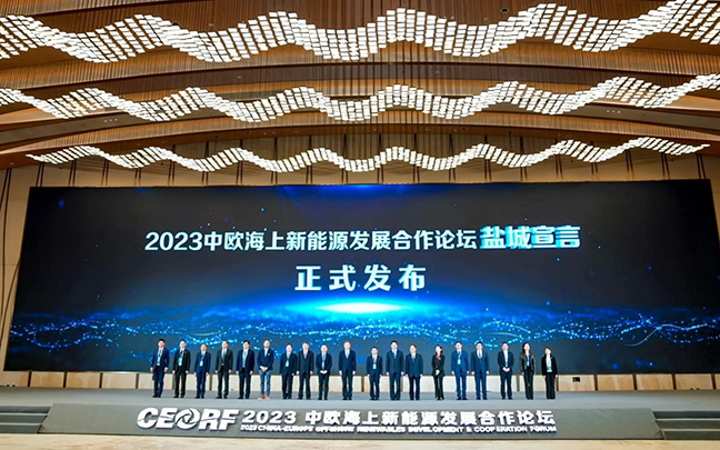 在11月21日舉行的2023中歐海上新能源發展合作論壇上,鹽城國投集團黨委書記、董事長張林海與論壇主辦方及近20家中歐企業聯合發布了《2023中歐海上新能源發展合作論壇鹽城宣言》。宣言肯定了海上新能源在保障能源安全、加快能源轉型等方面的重要價值,強調了深化中歐合作對于推動雙方共贏發展和實現全球氣候目標的重要意義,并提出三點呼吁:一是堅持開放共享,加強交流對話與需求對接;二是堅持創新引領,加強技術研發與試點示范;三是堅持互利共贏,加強產業協同與項目合作。宣言對于凝聚中歐各利益相關方合作共識、推動中歐務實合作發揮積極作用。