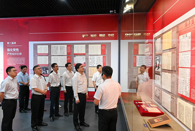 展覽透過一個個生動的案例,圍繞“擎旗抗戰 嚴明政治紀律”“強化黨性 嚴明組織紀律”“激濁揚清 嚴明廉潔紀律”“心系人民 嚴明群眾紀律”“建章立制 嚴明工作紀律”“立德立言 嚴明生活紀律”“所向披靡 奪取抗戰勝利”等七個篇章,生動展現了新四軍堅定崇高的信仰、守紀如鐵的作風、嚴于律己的風范、懲治腐敗的決心、親民愛民的情懷和艱苦奮斗的精神。集團領導班子認真聽取講解介紹,用心學習體悟,表示將嚴格對照“六項紀律”,在學紀知紀明紀守紀上下功夫,在以學促干上持續用勁,把深化黨紀學習教育同貫徹落實省市委全會部署要求、抓好當前各項工作結合起來,以實干實績實效為鹽城高質量發展大局多作貢獻。