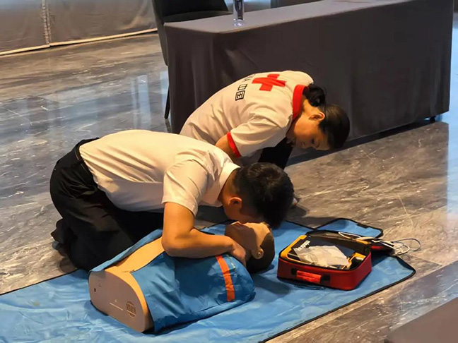 積極探索創(chuàng)新安全管理模式,通過(guò)跨界合作、全員參與,提升安全管理效能。國(guó)投物業(yè)公司與鹽城市亭湖區(qū)紅十字會(huì)攜手,在鹽城先鋒中心項(xiàng)目創(chuàng)新開(kāi)展“消防+急救”雙場(chǎng)景聯(lián)動(dòng)演練。活動(dòng)特邀紅十字會(huì)專家現(xiàn)場(chǎng)授課,圍繞心肺復(fù)蘇(CPR)、AED 使用、海姆立克急救法等急救技能展開(kāi)詳細(xì)講解與實(shí)操指導(dǎo)。