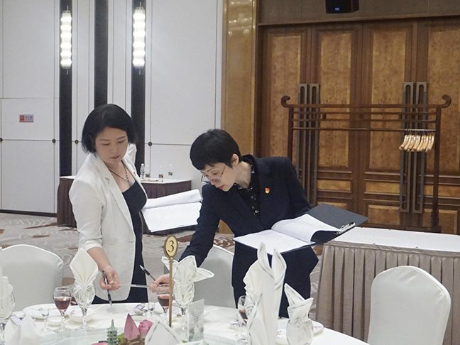 本次大賽設置了禮賓服務、業務情景洽談、中西餐擺臺、傳統菜、創新菜、中式鋪床、穿戴消防服及消防水帶鋪設連接等10個比賽項目,各位選手嚴肅認真、一絲不茍、勇于爭先,賽出了風格、賽出了水平,展示了嫻熟的操作技能和良好的精神風貌。經過一天的角逐,最終決出了各比賽項目的獲勝選手及團體獎項,并舉行了頒獎儀式。
