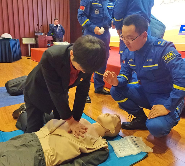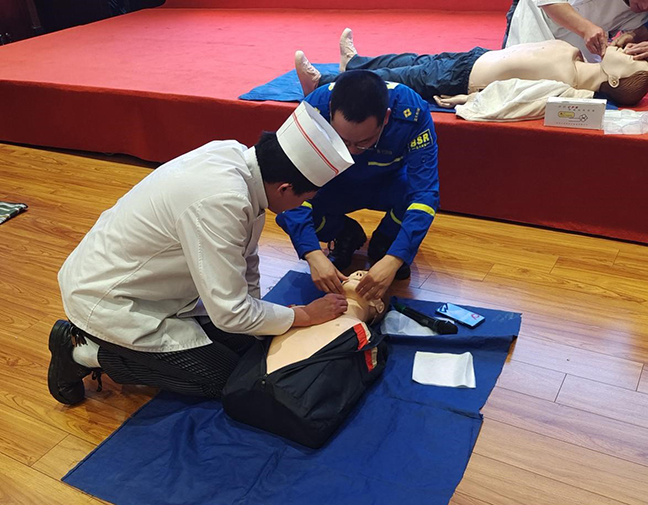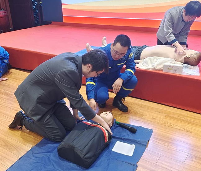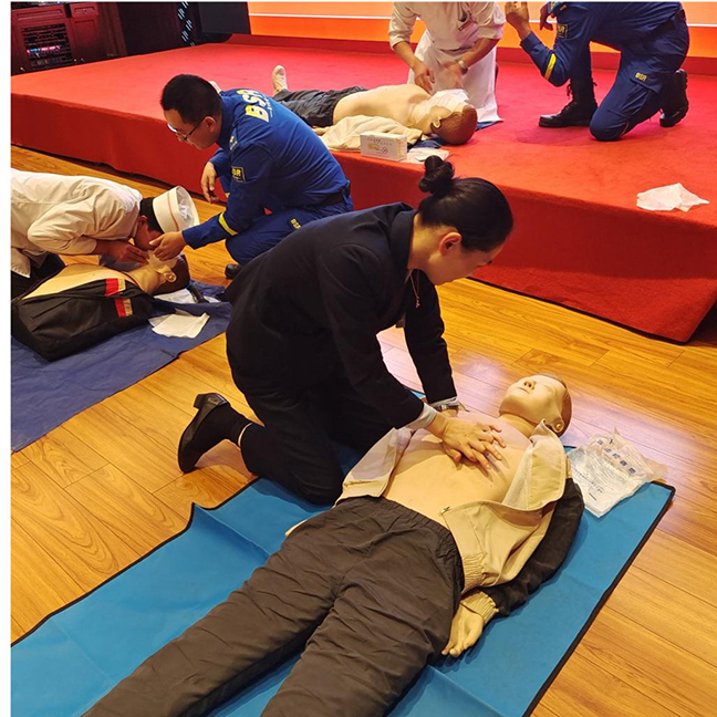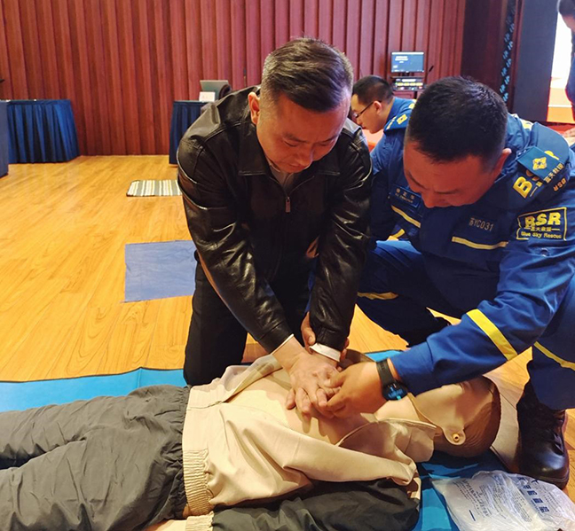 本次培訓采取理論講解與實際操作相結合的方式。宣講員用通俗易懂的語言向大家介紹了學習急救知識的必要性、正確的急救步驟和施救措施等相關知識。在實操環節,藍天救援隊的同志們通過模擬演練、一對一指導等形式,重點講解和演示了心肺復蘇術、海姆立克急救法、創傷處理等急救措施的規范操作。參訓人員認真聆聽講解,并積極進行實操練習,逐步掌握了正確操作方法。