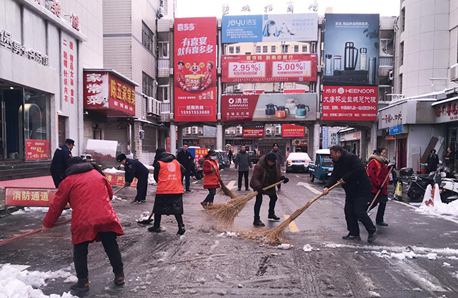 鹽城招商場“聞雪而動(dòng)”,組織市場管理人員、保潔人員、商戶志愿者到周邊道路、停車場、居民樓坡道開展義務(wù)掃雪活動(dòng),并做好宣傳發(fā)動(dòng)工作,動(dòng)員市場商戶積極參與到活動(dòng)中來。大家干勁十足、團(tuán)結(jié)協(xié)作、有序清理,市場周邊積雪情況得到了極大緩解,及時(shí)保障了消費(fèi)者及來往行人的出行暢通。同時(shí),公司還組織人員赴各號(hào)樓逐層檢查,排除冰棱墜落安全隱患,進(jìn)一步保障人員出入安全。