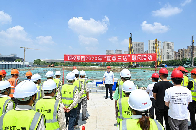 為切實(shí)保障廣大一線職工的安康權(quán)益,扎實(shí)做好高溫作業(yè)和高溫天氣作業(yè)勞動(dòng)保護(hù)工作,近日,鹽城國投集團(tuán)黨委書記、董事長張林海帶隊(duì)開展夏季送清涼、送安全、送法律“三送”慰問活動(dòng)。集團(tuán)黨委委員、副總經(jīng)理姜洪柏參加活動(dòng)。